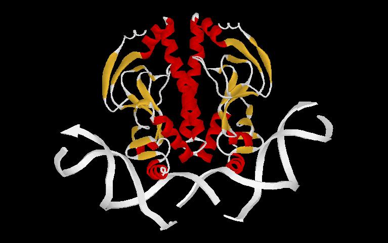Not only supercoiling regulates transcription. Proteins called activators, with the best known example of such being protein CAP (catabolic activated protein) (as a jpg file or pdb file), bind to DNA and change its structure, usually by inducing bending. Introduction of bends leads to the initiation of transcription.