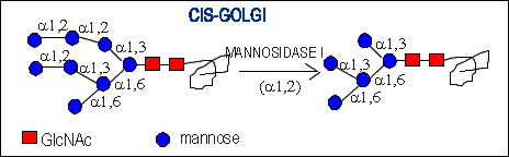Mannosidase I (alpha1,2 specific) in the cis-Golgi.