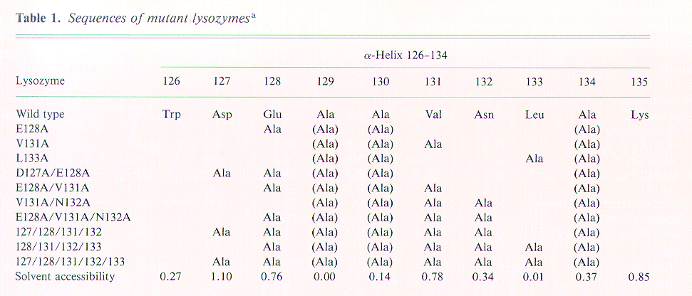 was carried out by Zhang who placed up to five alanines in the 126-134 alpha helix of T4 lysozyme.