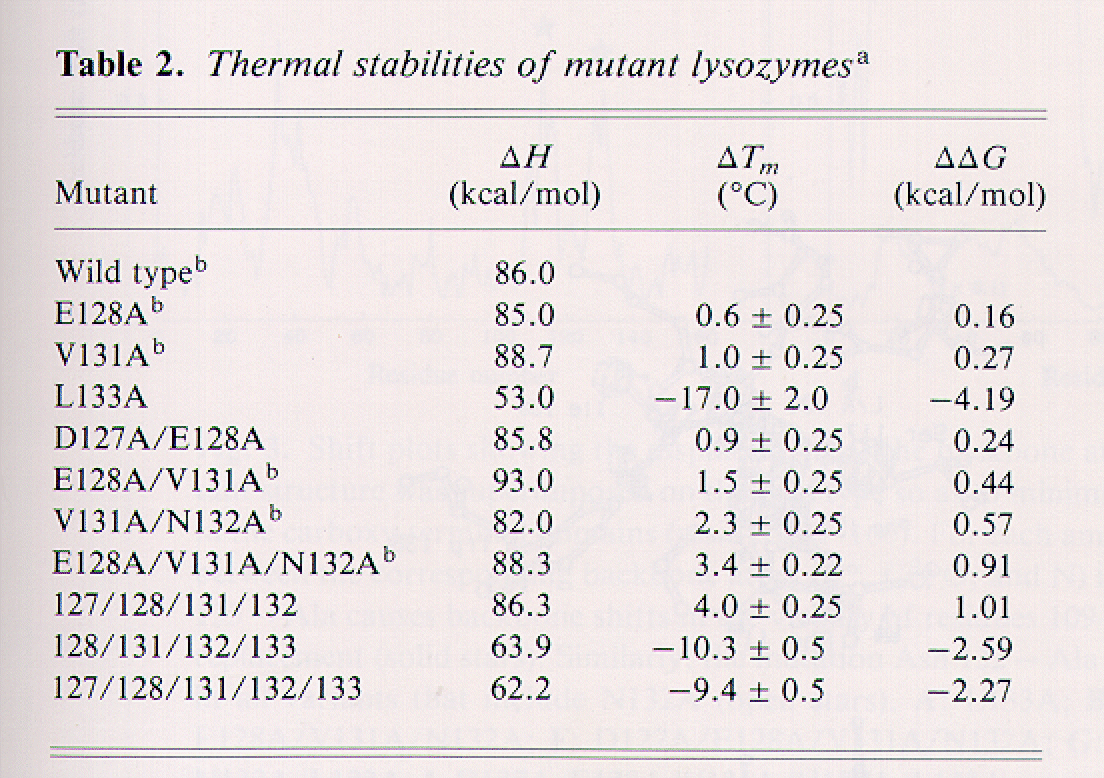 The substitution of alanine at the Glu128,Val131 and Asn132 increased the thermostability of T4 lysozyme. The