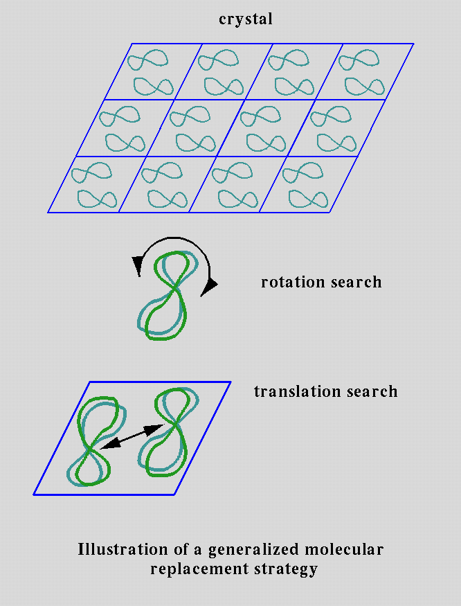 If a related or homologous (more than 50% sequence identity) protein structure is already known then the method of Molecular Replacement (MR) may be used. The idea is to find the rotation and translation which position the model structure in the unit cell so as to give the highest correlation between experimental diffraction measurements and those calculated from the model.