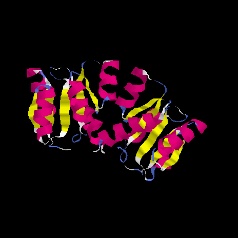 CheY consists entirely of conserved N-terminal response regulator domains. It is a single domain protein with a doubly wound five-stranded parallel beta sheet surrounded by five alpha helices. Asp-12, Asp-13 and Asp-57 are clustered to form an acidic pocket, which constitutes the phosphorylation site of the protein. Asp-57 is the phosphoacceptor. Divalent metal ions are essential for the transfer of phosphate to CheY. The acidic pocket acts as a magnesium ion-binding site. Lys-109 also has a functionally important role; the side chain epsilon-amino group is bound to one of the beta-carboxylate side chain oxygens of Asp-57. Phosphorylation of Asp-57 causes a local adjustment of the carboxyl side chain and a repositioning of the Lys-109 side chain. These arrangements in the active site give rise to larger-scale conformational changes and results in active protein able to interact with the flagellar switch proteins.